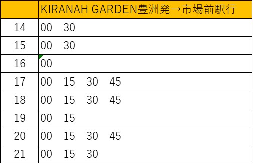 ※シャトルバスは、KIRANAH GARDEN 豊洲から市場前駅への片道運行のみとなります。